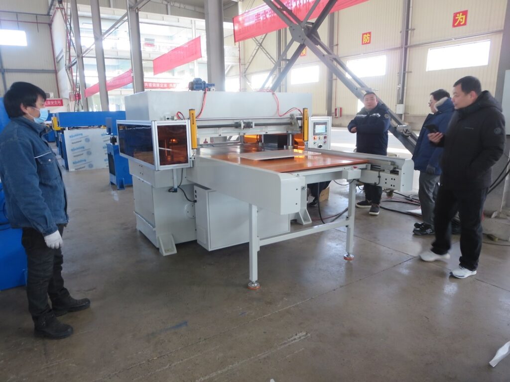 中国裁断機メーカーにてお客様と試運転立会に行ってきました。